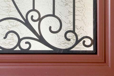 Διαθέτει διπλό ή τριπλό τζάμι ασφαλείας που στο εσωτερικό του υπάρχει βαμμένη με ειδική βαφή σιδεριά ασφαλείας. Η σιδεριά δε βγαίνει μέσα από το σύστημα με αποτέλεσμα η πόρτα να μη μπορεί να παραβιαστεί. Σε συνδιασμό με κλειδώματα τριών (3) σημείωνείναι κυριολεκτικά απαραβίαστη. Ακόμη και αν σπάσει το τζάμι είναι αδύνατο να αφαιρεθεί η ενσωματωμένη σιδεριά