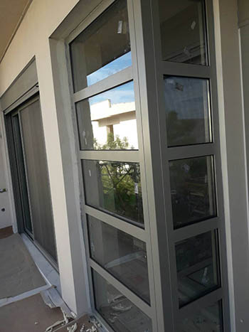 Ειδική κατασκευή από αλουμίνιο , inox και βαμένο τζάμι.