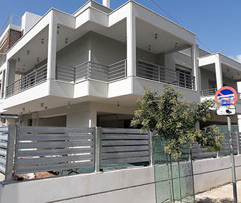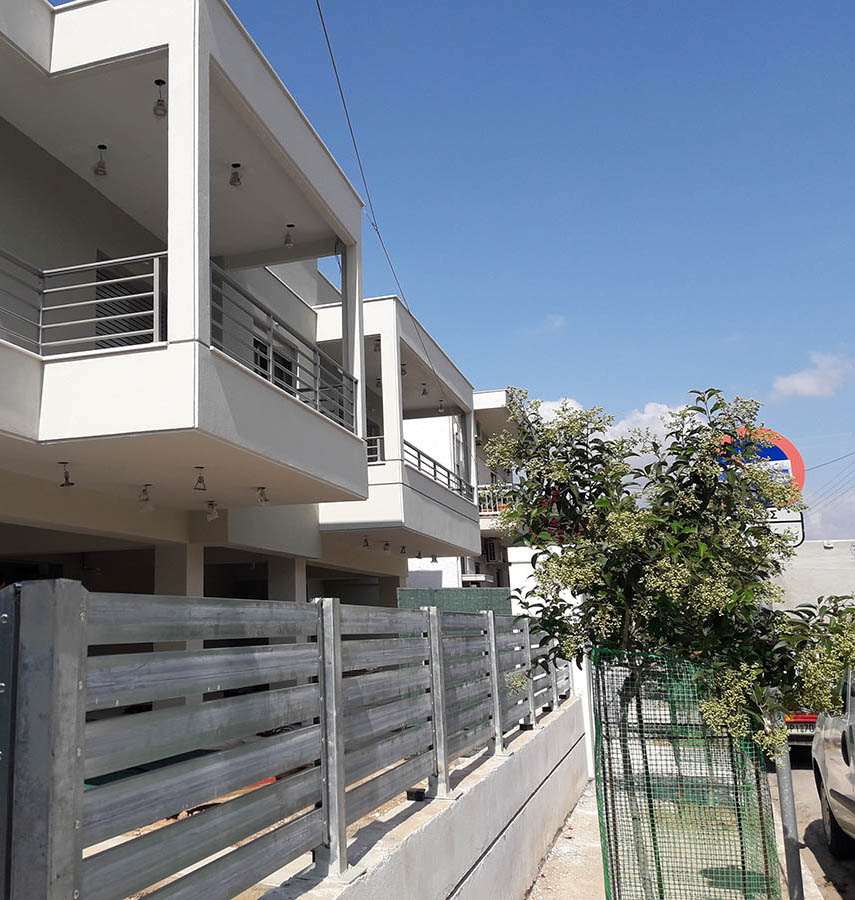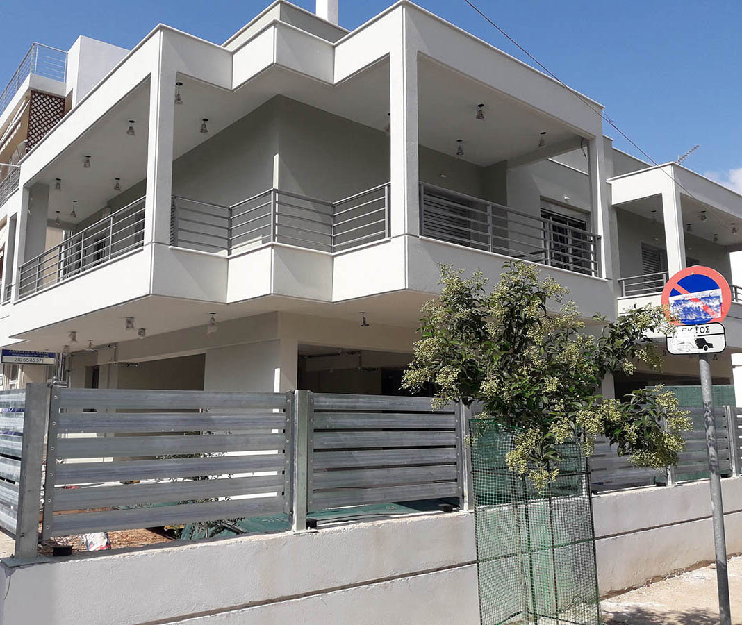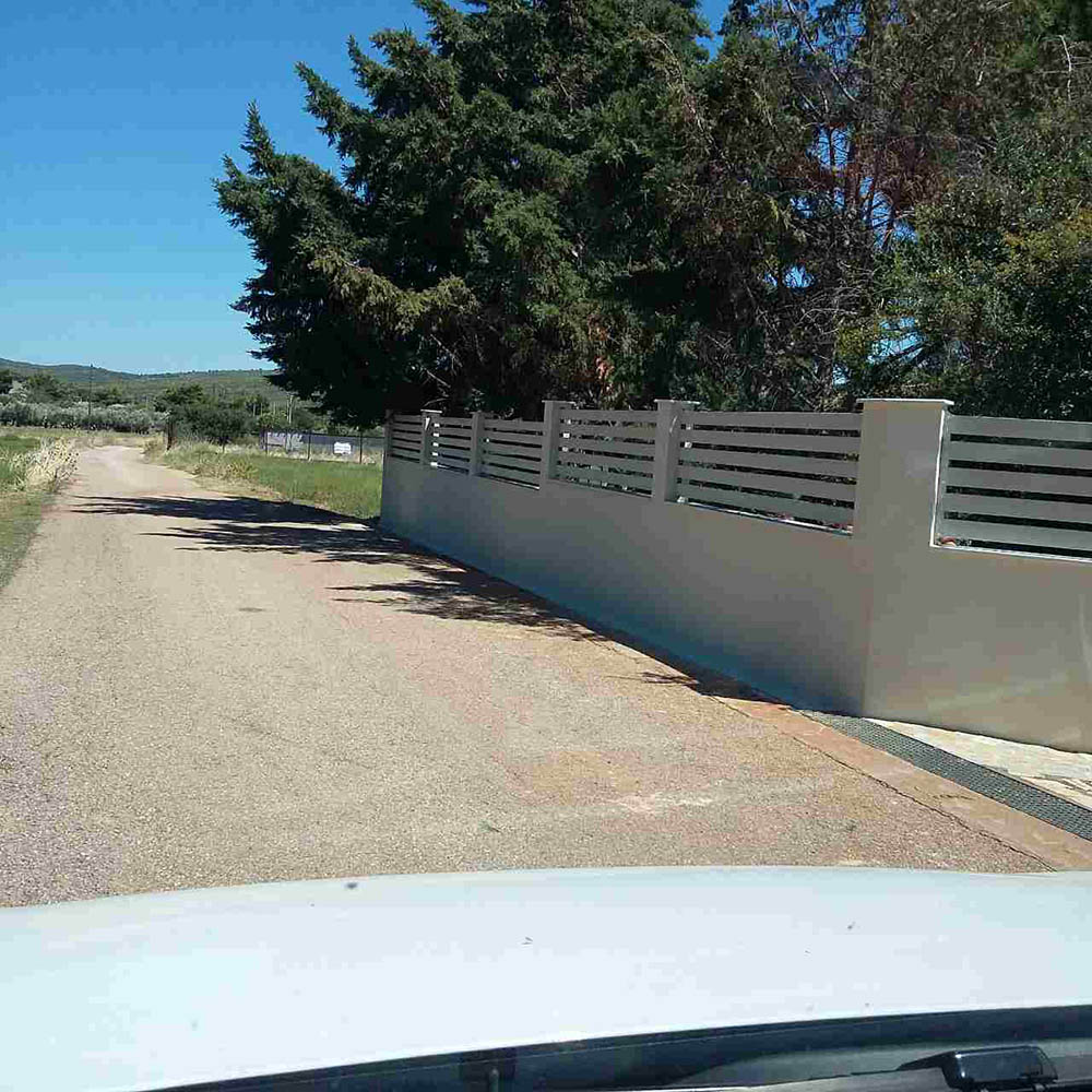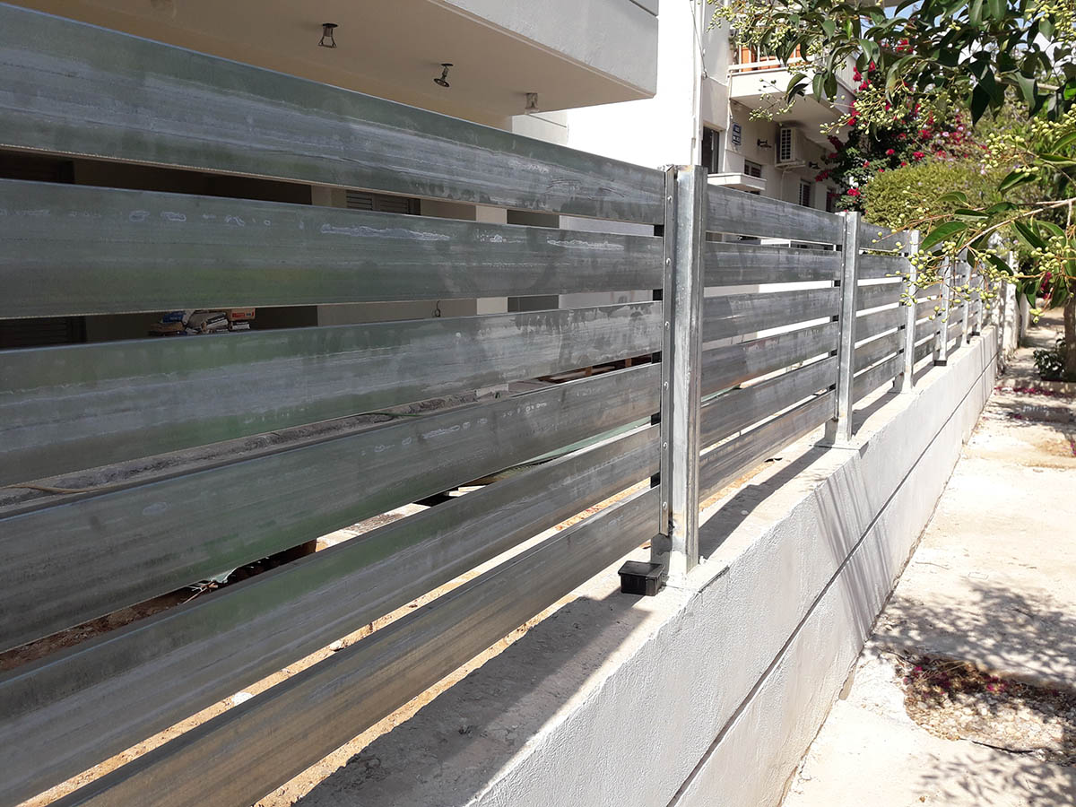 Φράχτες σιδήρουΠοιότητα / αισθητική / αντοχή Σε τσιμεντένιο τοιχίο . Περιμετρική άποψη φράχτη . Περιμετρική άποψη φράχτη . Ανάμεσα σε κολώνες . Σύνθεση φράχτη - πόρτας .