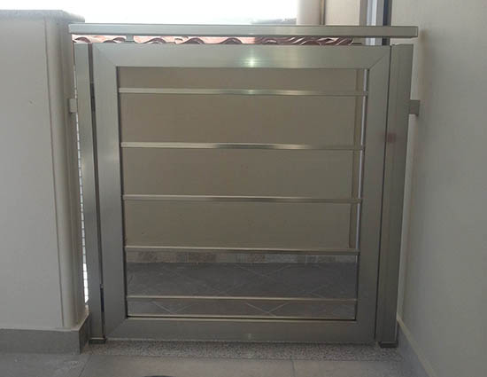 Πόρτα χαμηλή από inox και αλουμίνιο.
